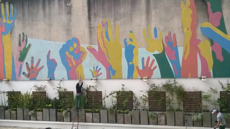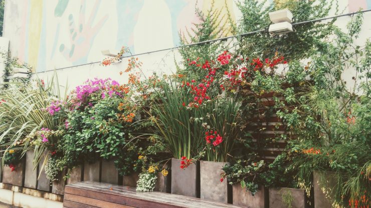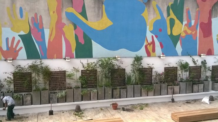 Plantación en macetones en la Facultad de Ciencias Sociales